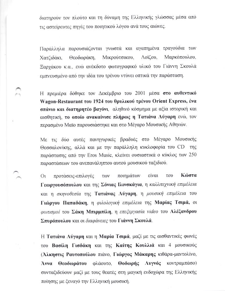 | Θέλετε δέντρ’ ανθίσετε, θέλετε μαραθείτε…, πρόγραμμα μουσικής παράστασηςΠρογράμματαΠρόγραμμαΜουσικό Βαγόνι Orient Express |