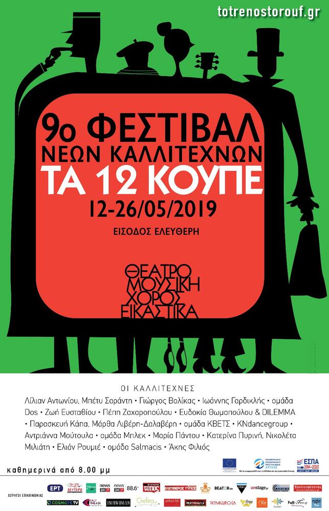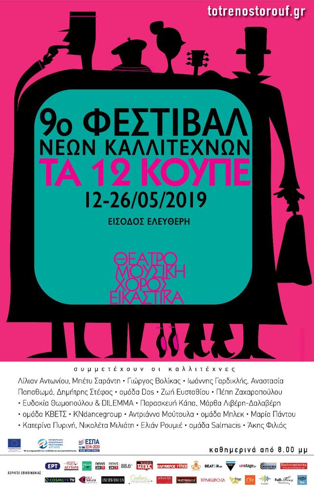 9ο Φεστιβάλ Νέων Καλλιτεχνών Τα 12 Κουπέ, αφίσα, newsletter, πρόγραμμα, καταχωρήσεις
