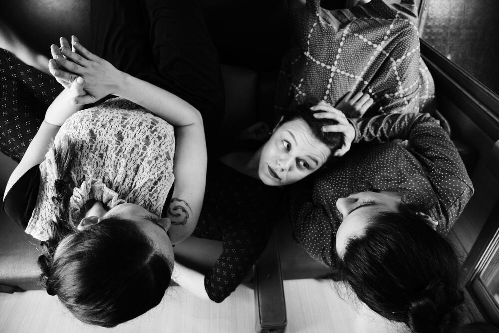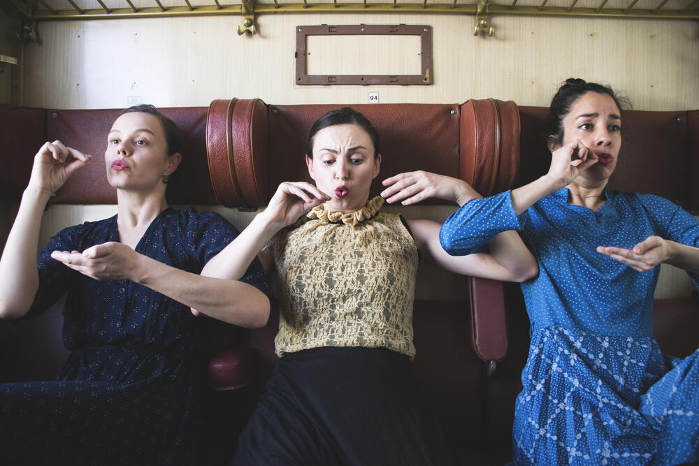 Φωτογραφικές λήψεις της φωτογράφου Αντιγόνης Κουράκου από τη χοροθεατρική performance Στη Μόσχα, αδερφές μου, στη Μόσχα, η οποία παρουσιάστηκε στο πλαίσιο του 7ου Φεστιβάλ Νέων Καλλιτεχνών «Τα 12 Κουπέ», που έλαβε χώρα στο Τρένο στο Ρουφ από τις 22 Μαΐου έως τις 4 Ιουνίου του 2017.