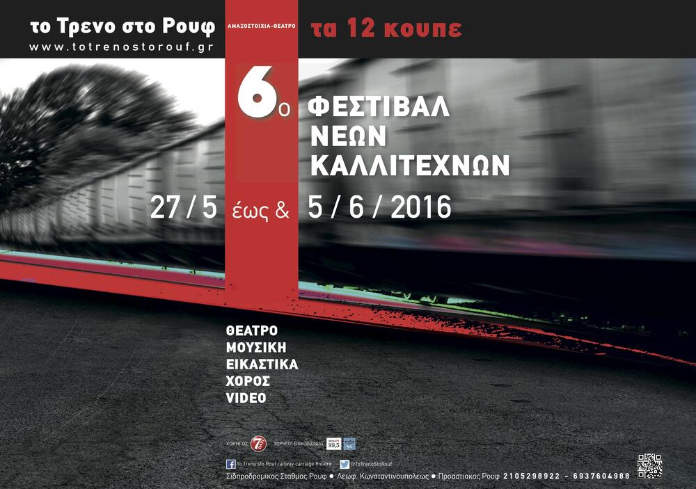 Εντοπίζονται 3 γραφιστικά αρχεία, που αφορούν την αφίσα του 6ου Φεστιβάλ Νέων Καλλιτεχνών «Τα 12 Κουπέ», που έλαβε χώρα στο Τρένο στο Ρουφ από τις 27 Μαΐου έως τις 5 Ιουνίου του 2016.